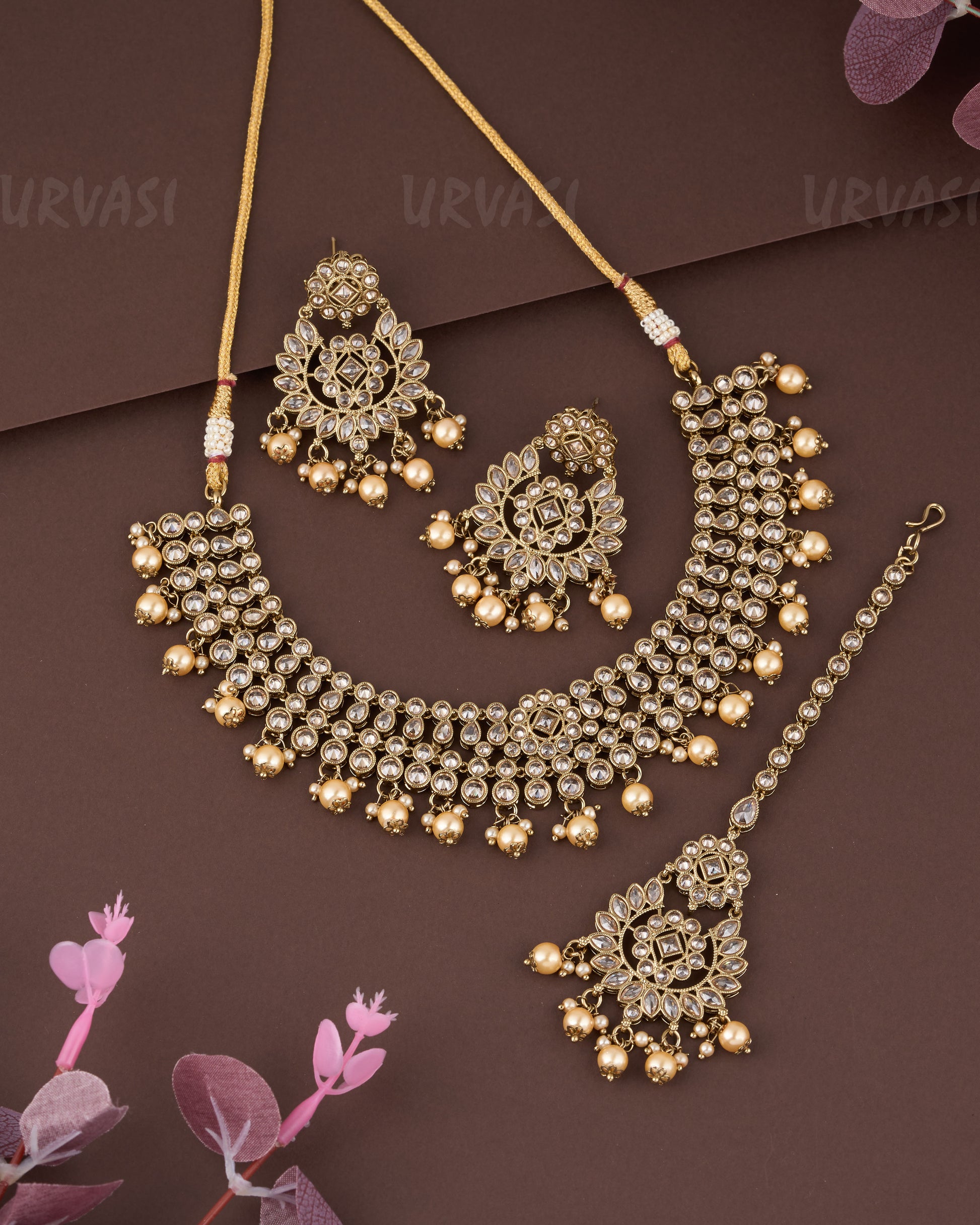 Make a striking statement with the Premium Cream+ Mehendi Polish Necklace, a masterpiece blending deep green stones and a unique mehendi (antique green-gold) polish finish. This necklace exudes vintage charm and royal elegance, perfect for those who appreciate traditional artistry with a modern twist.