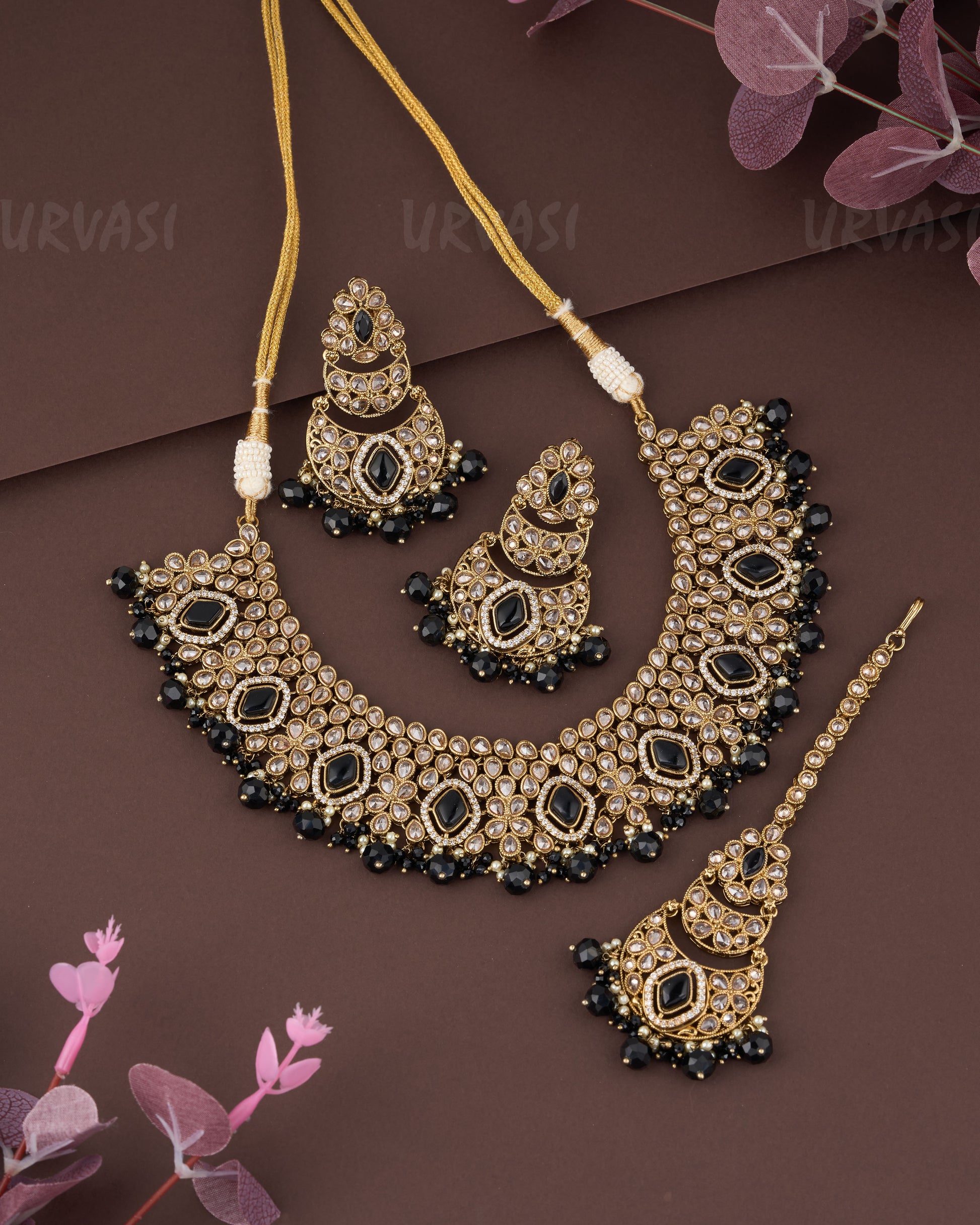 Make a striking statement with the Premium Black+ Mehendi Polish Necklace, a masterpiece blending deep green stones and a unique mehendi (antique green-gold) polish finish. This necklace exudes vintage charm and royal elegance, perfect for those who appreciate traditional artistry with a modern twist.