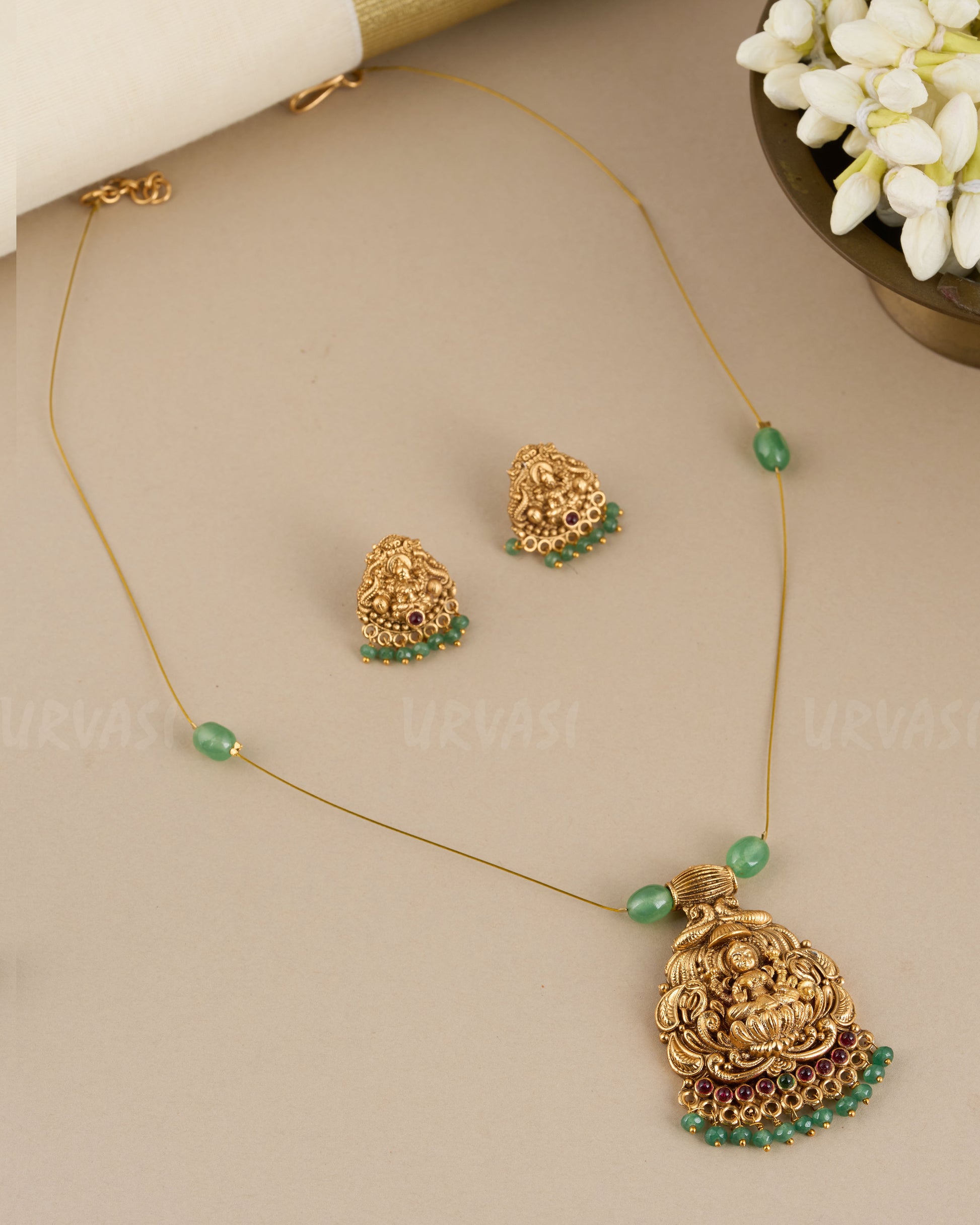 Crafted with a radiant gold finish, the invisible chain ensures the divine Lakshmi pendant takes center stage, symbolizing prosperity, purity, and blessings in a refined, elegant way.