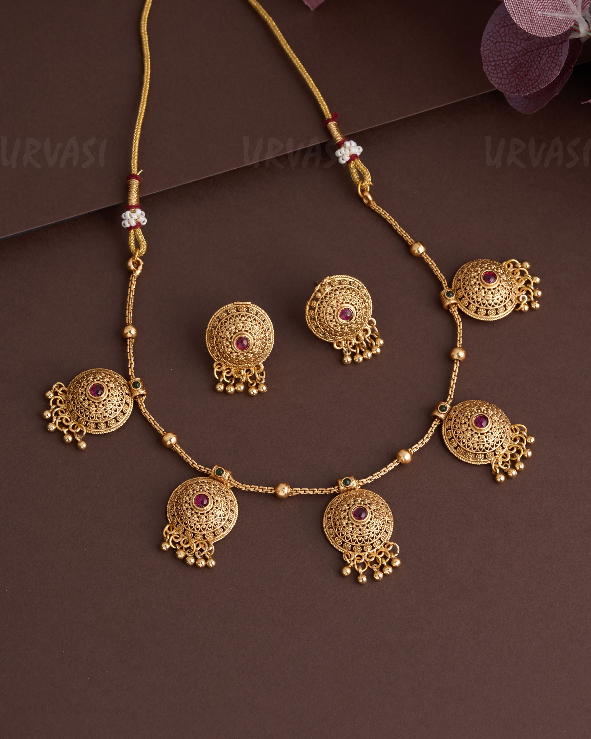 Perfect for layering or wearing solo, the ball chain design offers versatile styling options—ideal for both casual and festive occasions. The antique polish gives it a warm, rich look that complements a variety of outfits, from traditional sarees to modern ensembles.