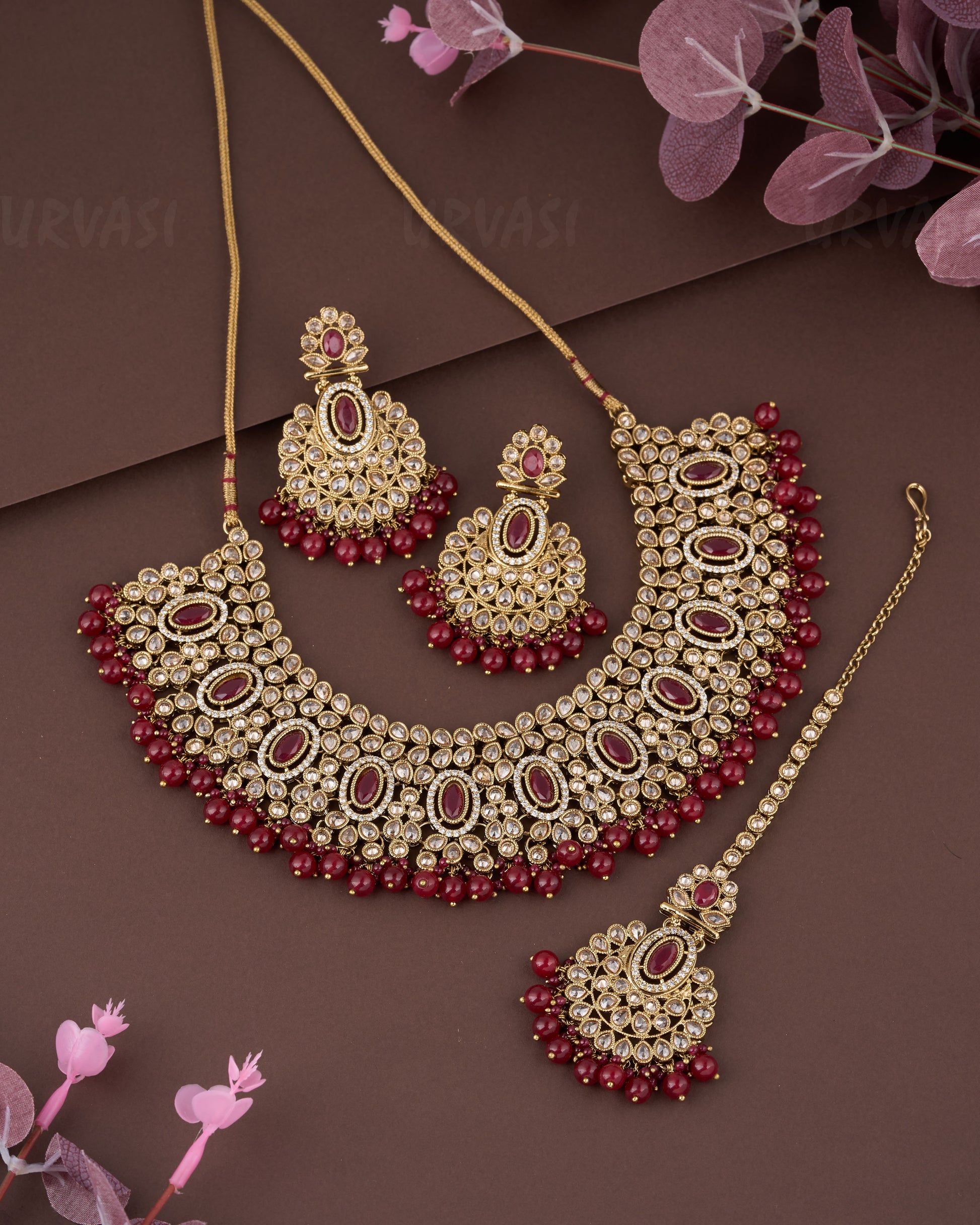 Make a statement of regal elegance with this Premium Red + Mehendi Polish Necklace, a fusion of rich color and traditional artistry. Adorned with deep red stones and finished in a unique mehendi (antique green-gold) polish, this necklace stands out with its earthy, vintage charm and luxurious appeal.