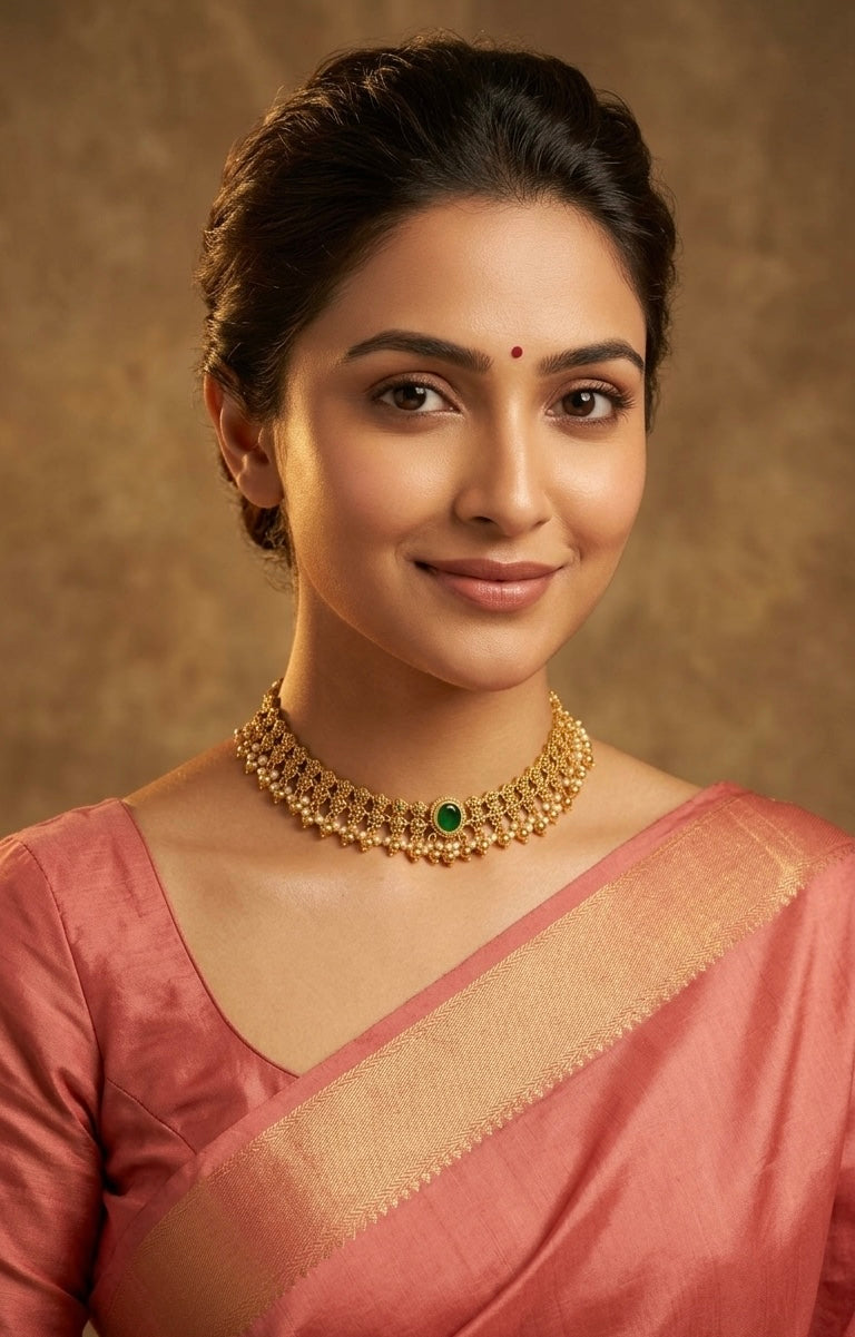 Crafted with meticulous attention to detail and finished with a subtle gold polish, the necklace complements sarees, lehengas, and fusion wear beautifully. Add a touch of timeless grace to your ethnic collection with this exquisite piece.