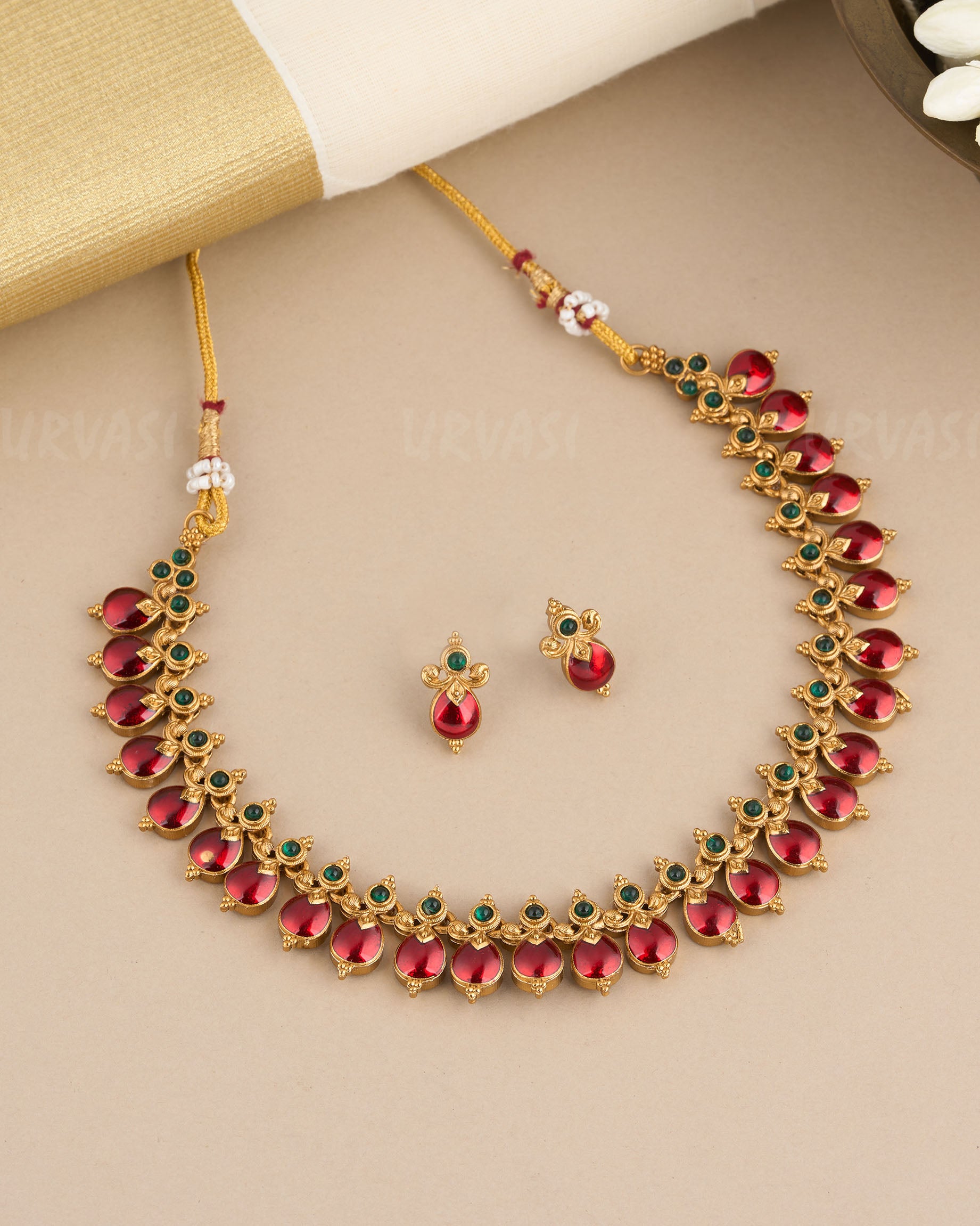 Embrace timeless South Indian artistry with this exquisite Palakka Version Necklace, inspired by the rich patterns and motifs of the traditional Palakka weave. This necklace beautifully blends cultural heritage with elegant design, making it a versatile accessory for both festive and formal occasions.