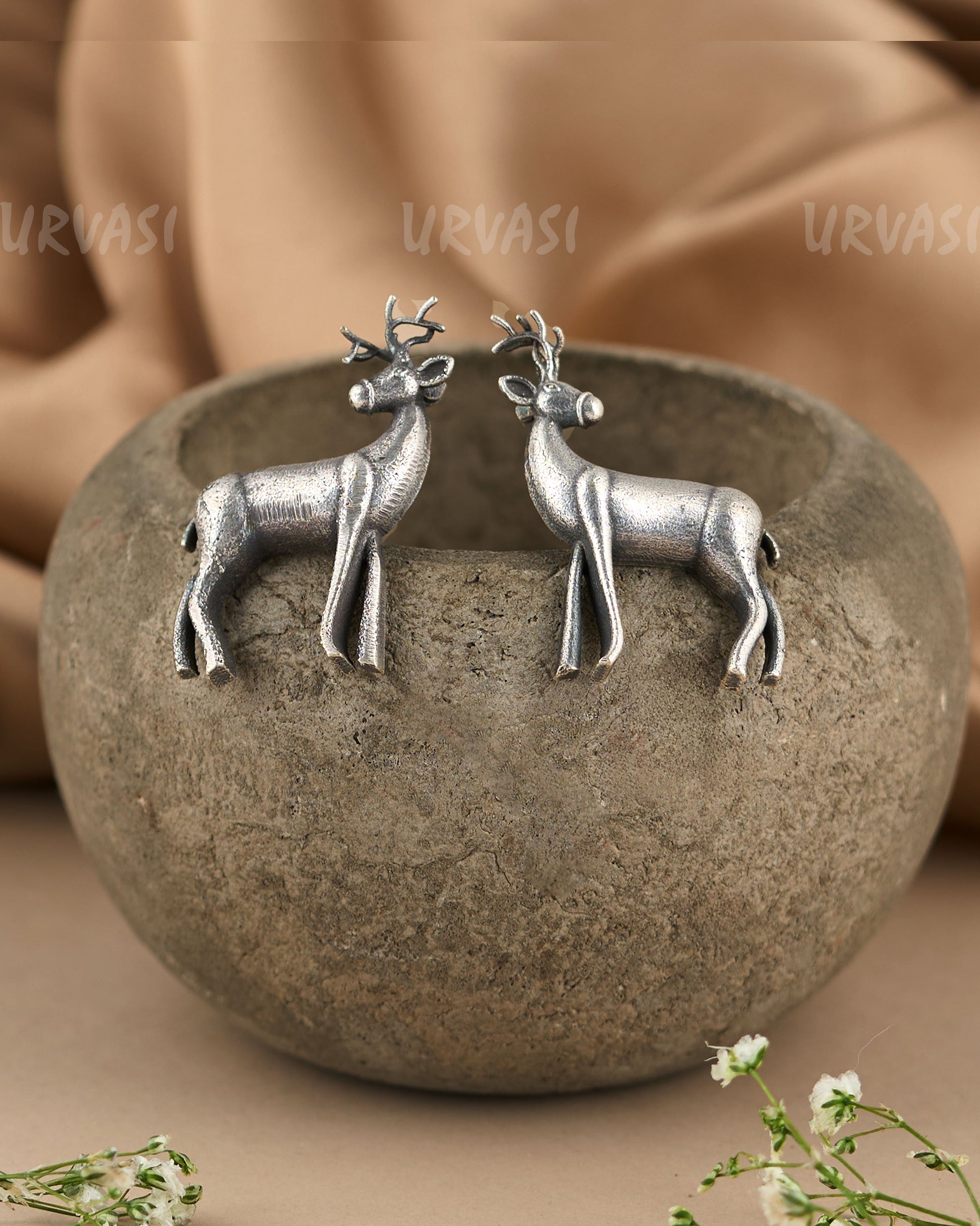 Bring the elegance of nature and tribal artistry to your ethnic collection with these Oxidised Silver Majestic Stance Metal Deer Earrings. Featuring a finely crafted deer motif in a proud, majestic stance, these earrings combine intricate detailing, oxidised silver finishing, and artistic design to create a statement accessory perfect for festive occasions, cultural events, or fusion ethnic styling.