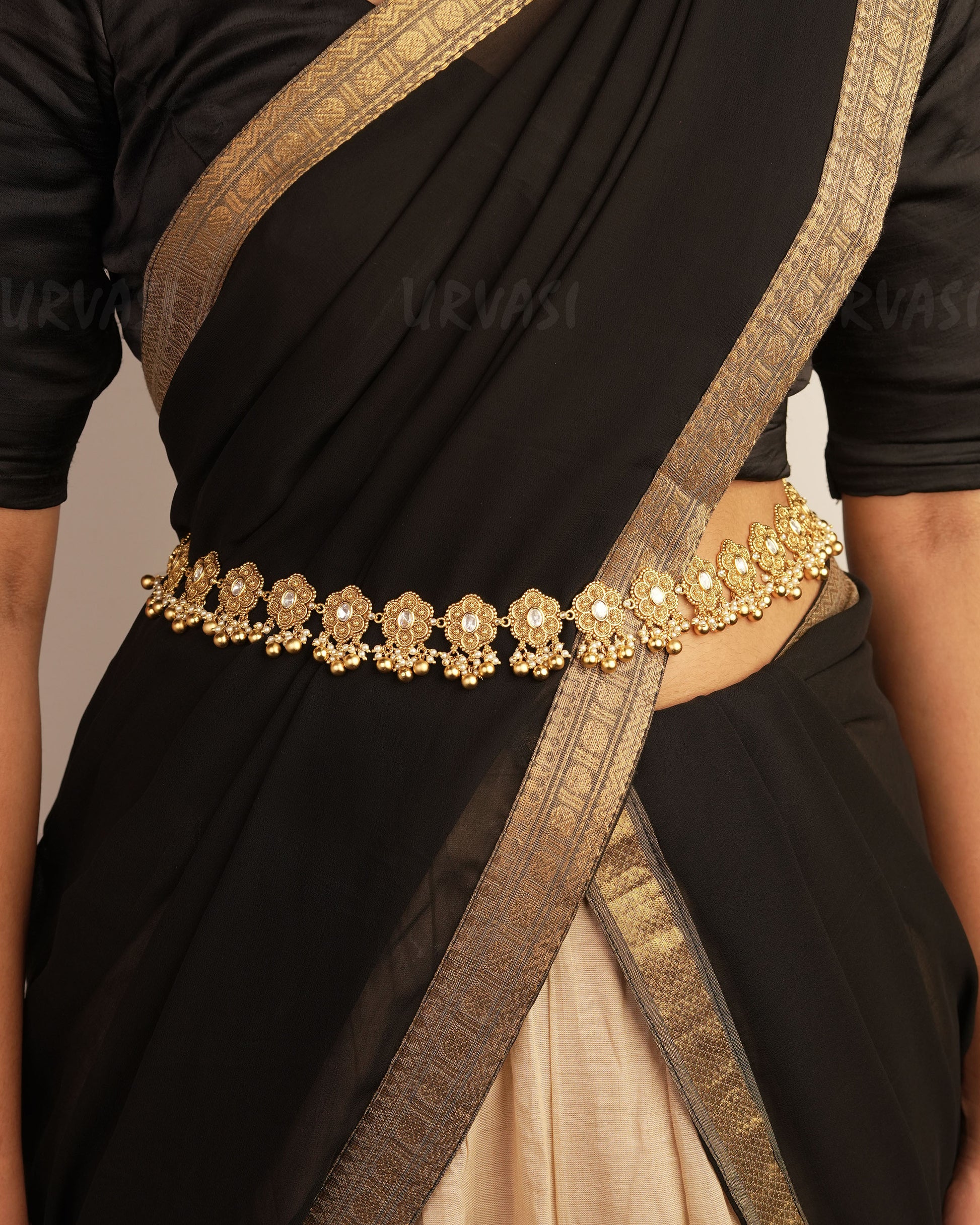 Celebrate femininity and tradition with this Premium Flower-Designed Hip Chain, delicately crafted to reflect the beauty of blooming florals. Featuring intricately detailed floral motifs and finished in a rich antique or gold polish, this waist ornament adds a graceful, romantic touch to any traditional or festive outfit.