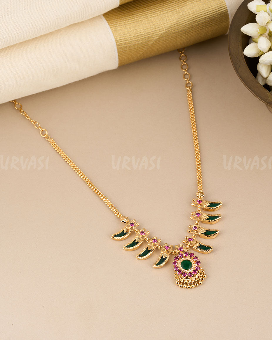 Celebrate the rich heritage of South Indian jewelry with the Traditional Pulinakham 4+4 Necklace, a beautifully crafted piece that honors timeless tradition and intricate artistry. Featuring a graceful double-layer design with four rows on each layer (4+4), this necklace showcases the iconic Pulinakham motif — a symbol of protection, strength, and auspiciousness.