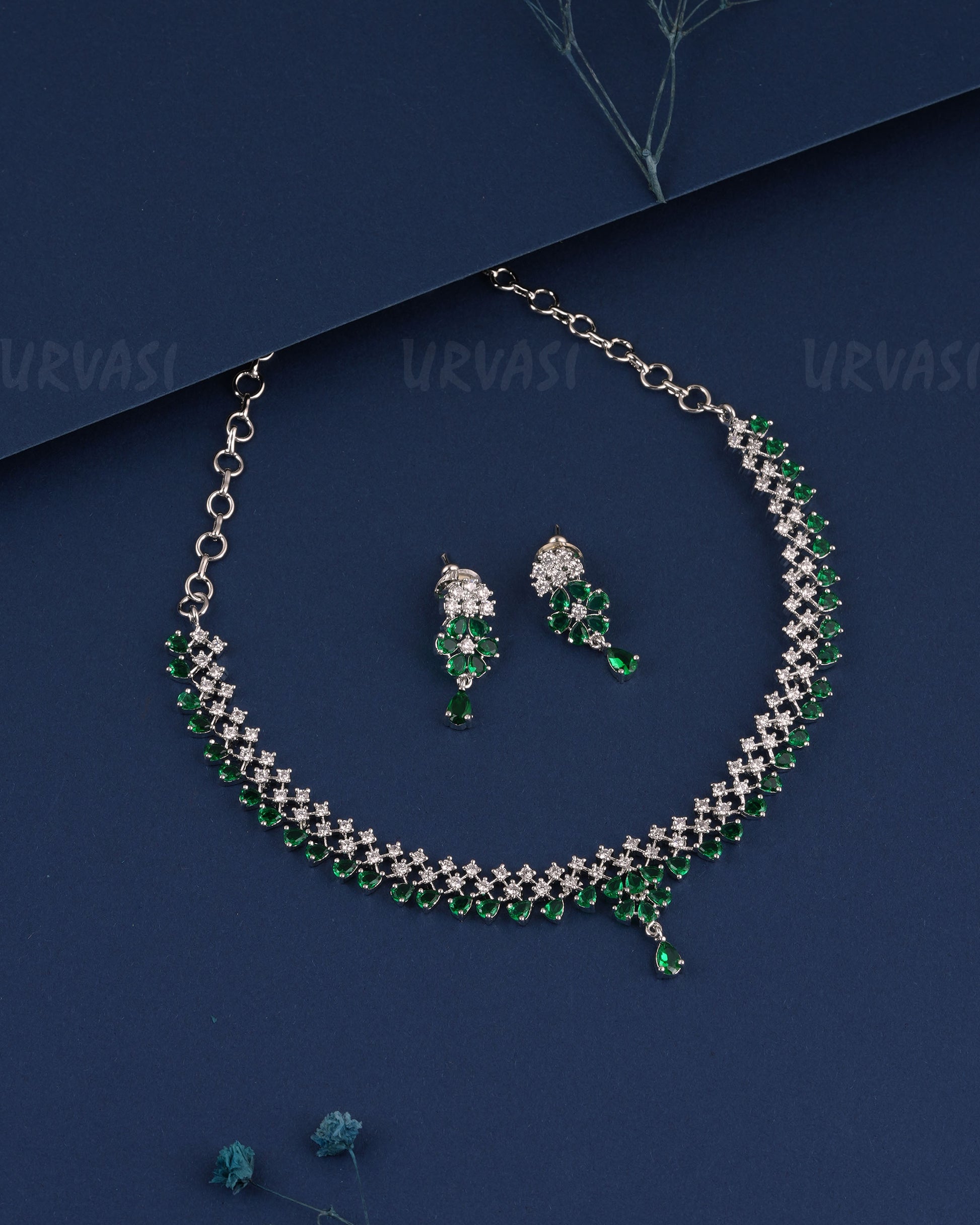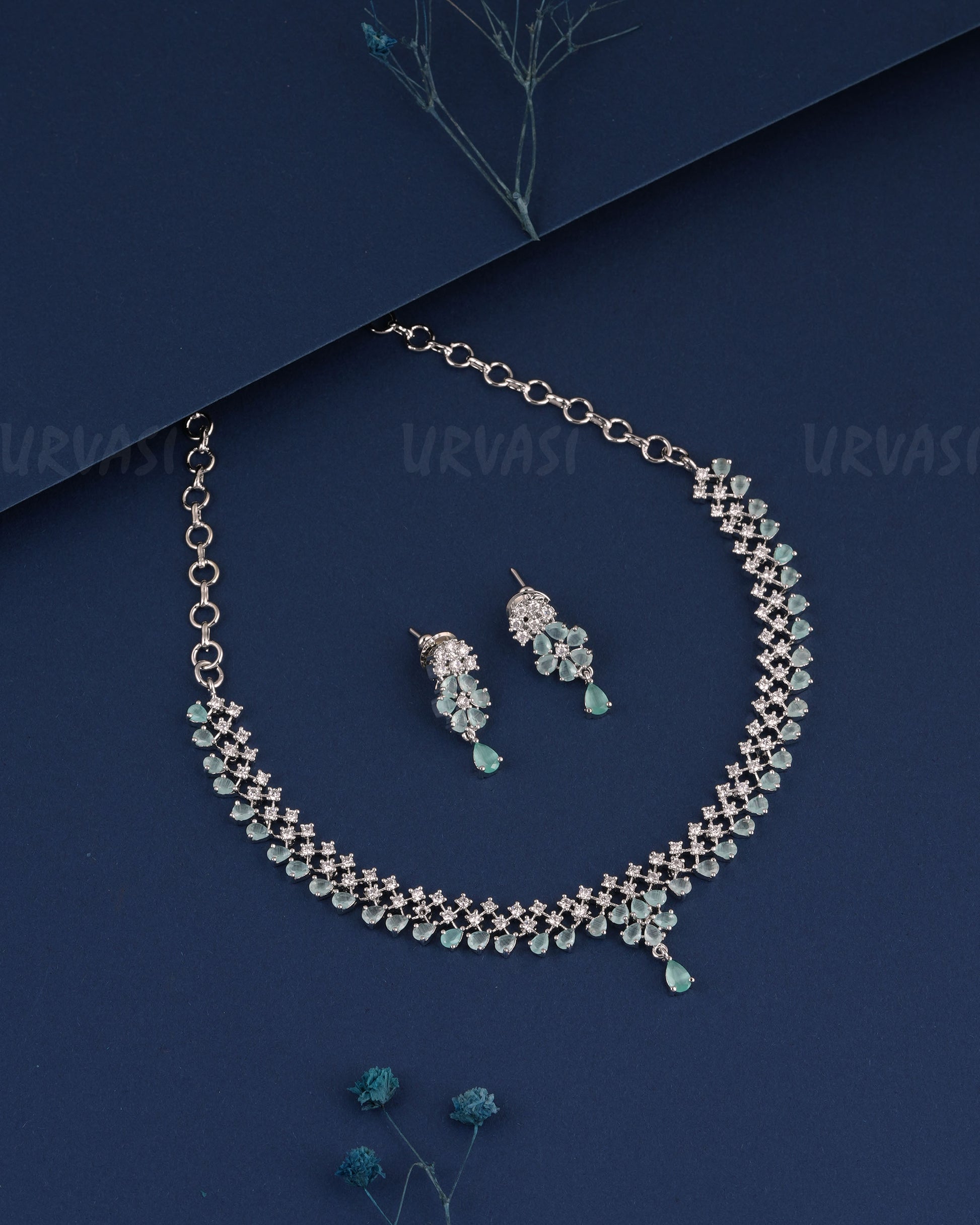 Rhodium Polish Stone-Studded AD Necklace 1503