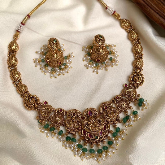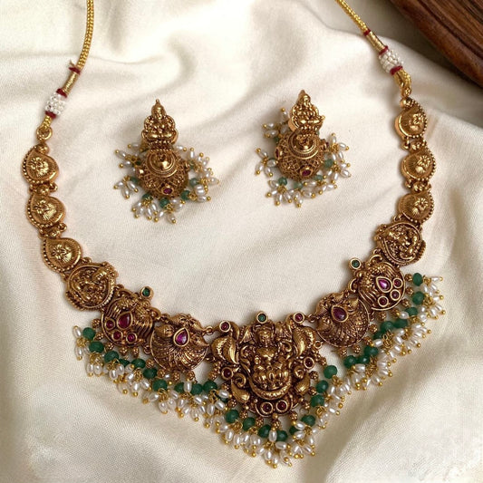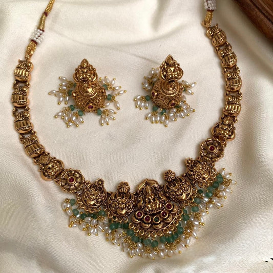 Gold-Toned Temple Lakshmi Necklace 046