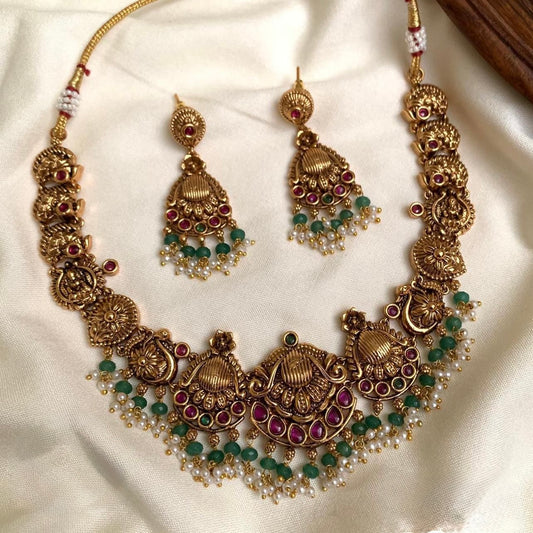 Traditional Nagapadam Inspired Ruby-Green Necklace 584