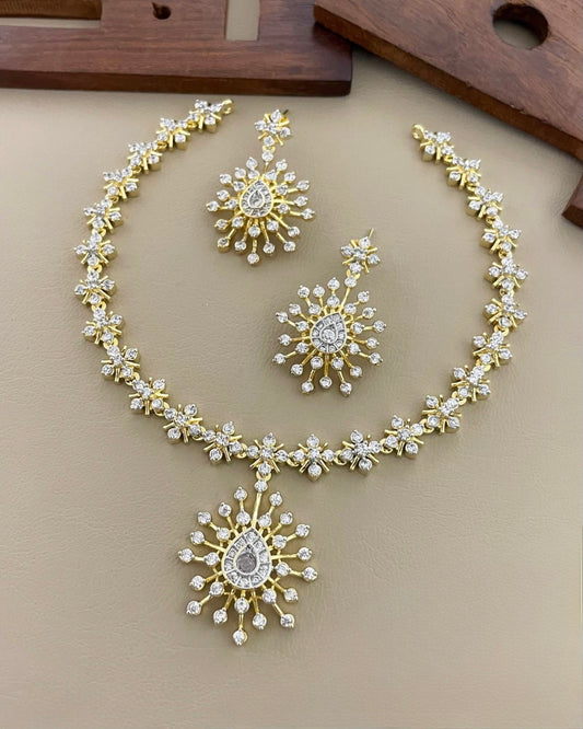 Gold Polish AD Stone Necklace 401
