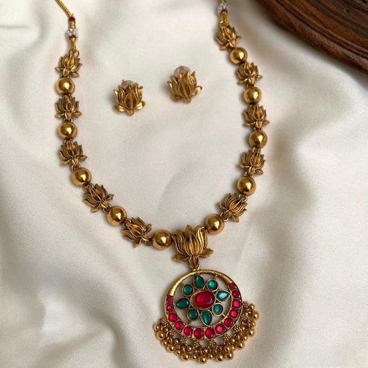 Gold-Toned Traditional Palakka Pendant Necklace 1140