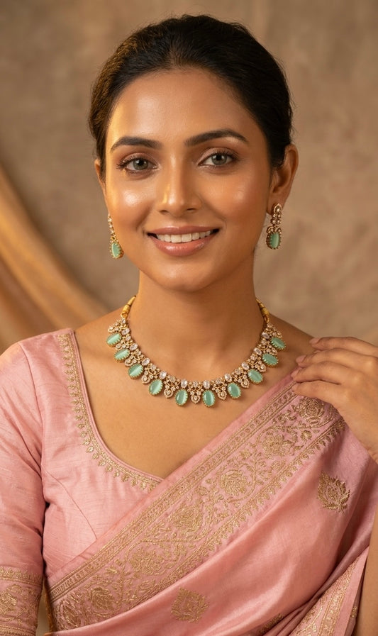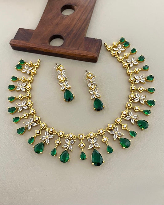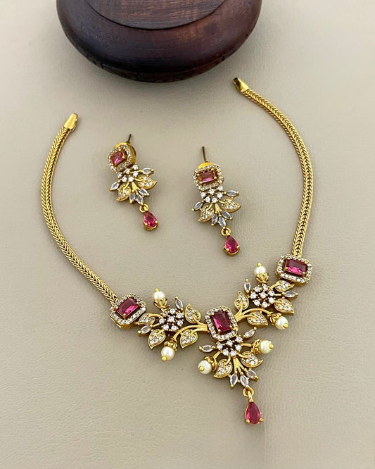 Gold-Toned Stone-Studded AD Necklace 640