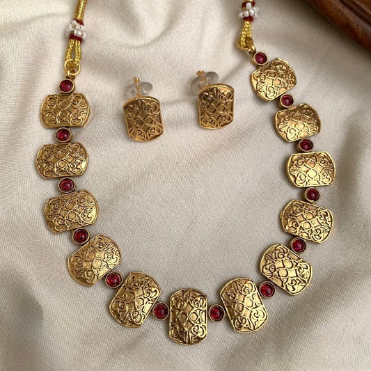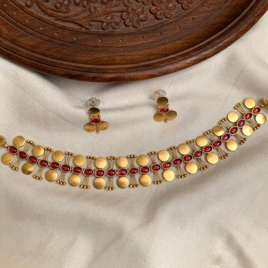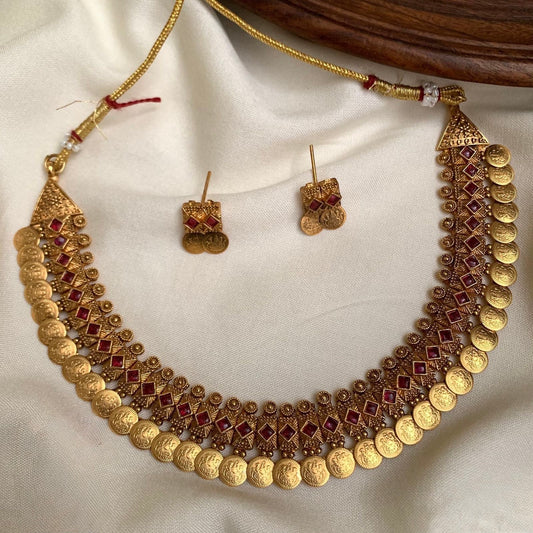 Gold-Toned Kaasu Lakshmi Designed Necklace 1435