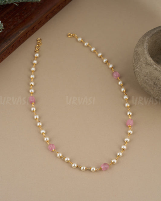 Gold-Toned Pastel Beaded Pearl Long Mala Ma 101