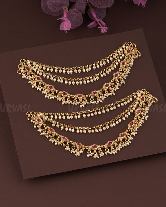 Gold-Toned Three layer Pearl Ear Chain EC 83