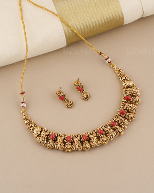 Gold-Toned Peacock With Floral Coral Nakshi Necklace 902