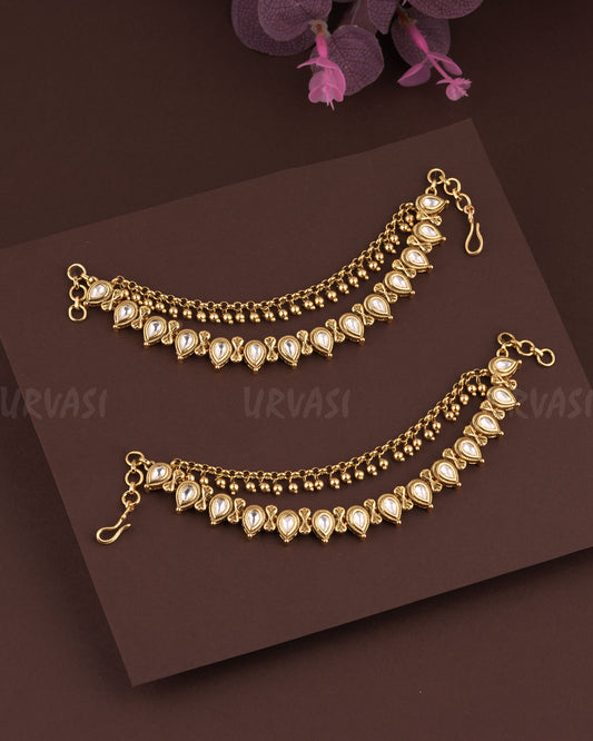 Gold-Toned Three-Layer Beaded Jhumka Ear Chain EC 79